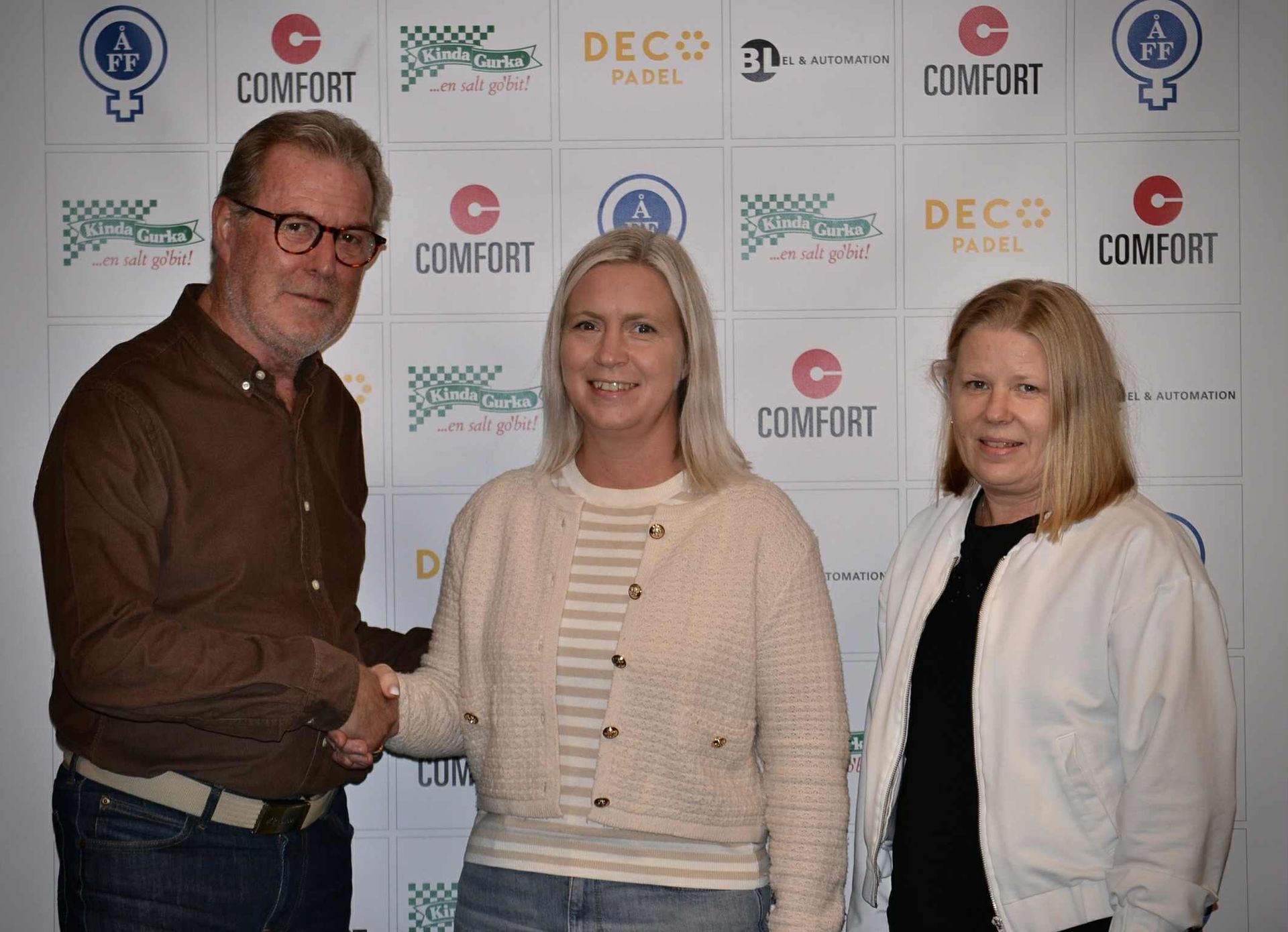 Åtvidabergs FF, här representerade av Peter Kieback och Ann-Sofie Skogh, välkomnar Lindha Landstedt in i föreningen.